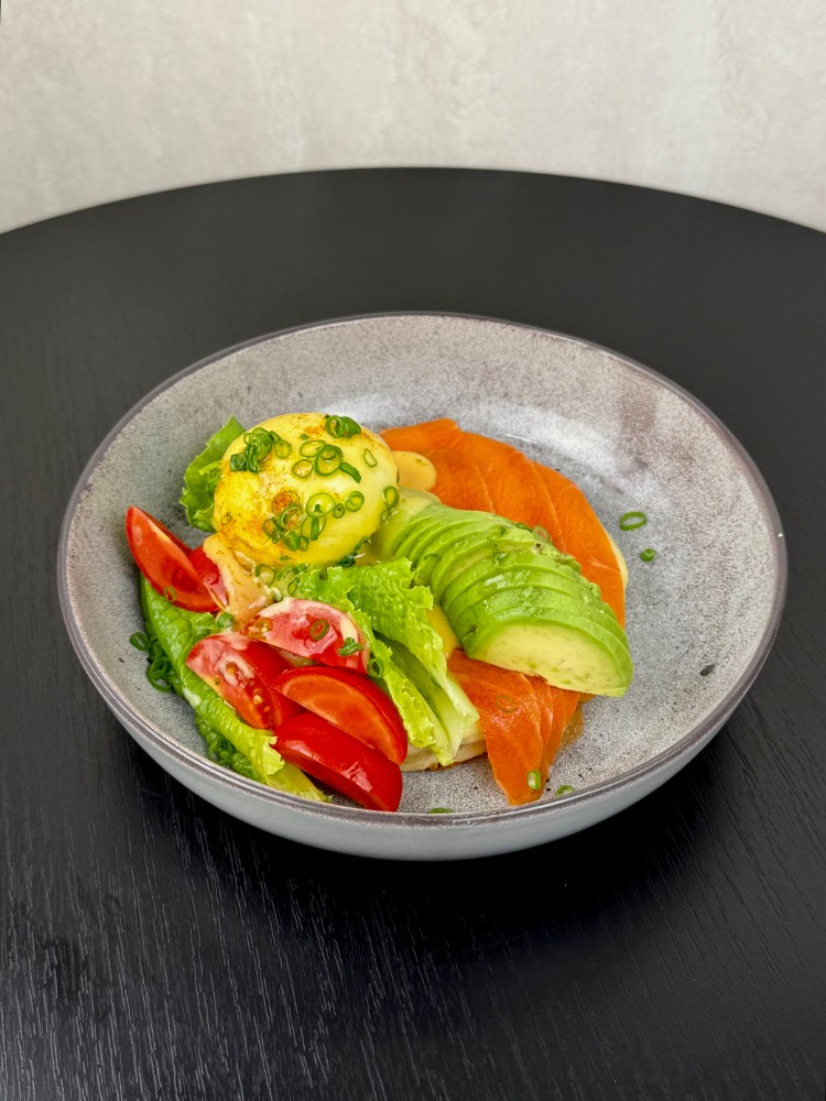 Оладик з лососем та авокадо