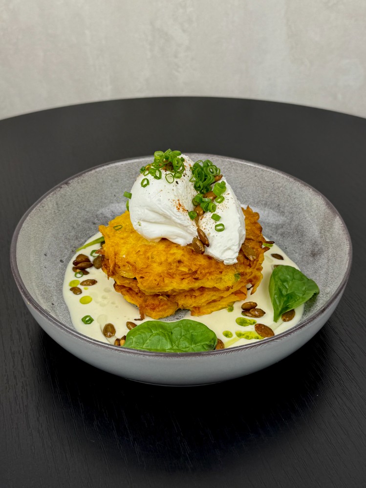 Гарбузові оладки з копченим лососем