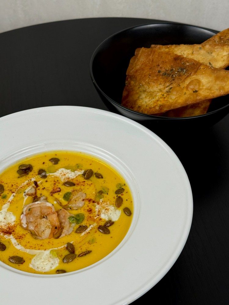 Гарбузовий крем суп з креветкою