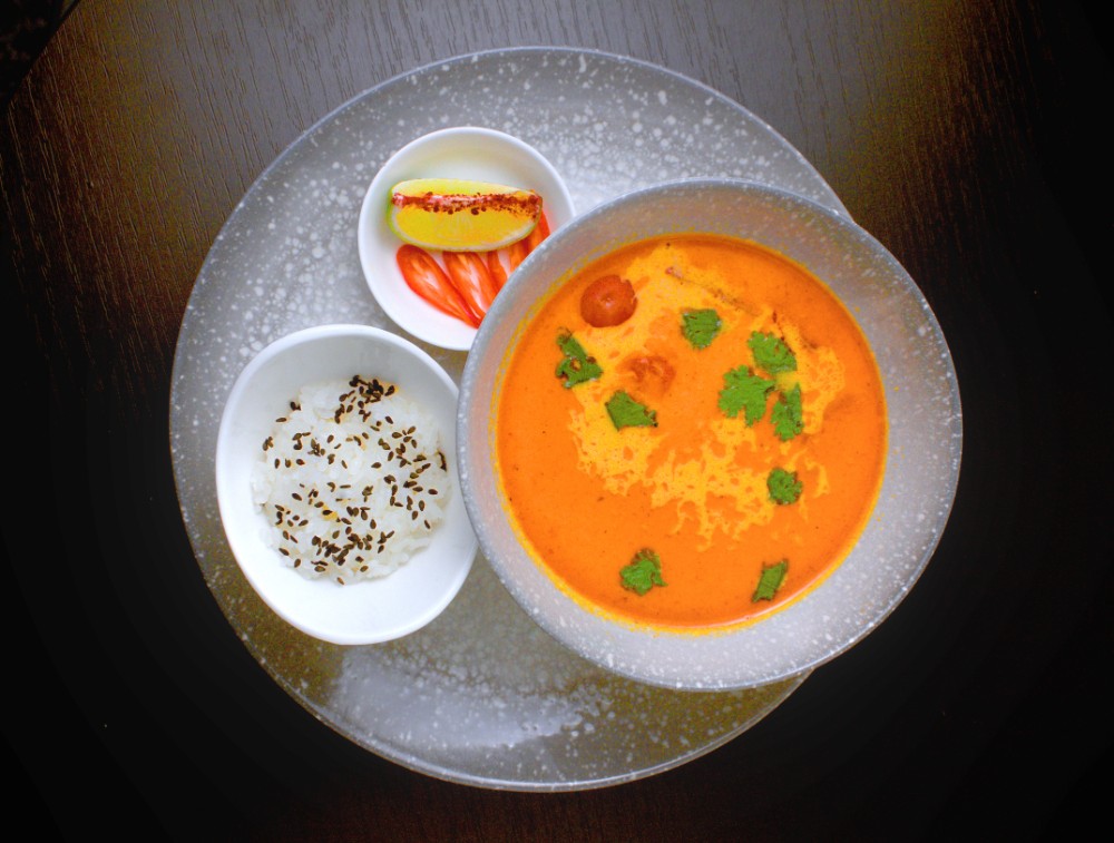 Рамен на основі густого курячого бульйону з деревинними грибами, комабоко, пшенична локшшина, ніжна яловичина, кукурудза, норі, яйце мариноване, кунжут, зелена цибуля.